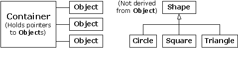 hold pointers to Shape and pointers to upcast objects of classes derived
